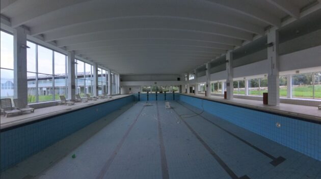 Opustené wellness centrum pôsobí ako kontrast dvoch svetov. Kedysi tu bolo počuť šum vody, smiech ľudí a jemnú hudbu. Dnes sú bazény prázdne, dlažba popraskaná a vírivky pripomínajú skôr studené vane plné prachu a lístia. Miesto, kde sa kedysi oddychovalo, dnes vyvoláva skôr zimomriavky.